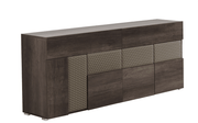 The buffet, with its ample storage space and sleek design, is the perfect complement to the table. The same rim surfaced oak high gloss lacquer finish and beige quilted eco-leather inlay are present, making this piece a true standout in any dining space.