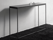 The Alexis Console table comes with a black glass top and brushed steel base.