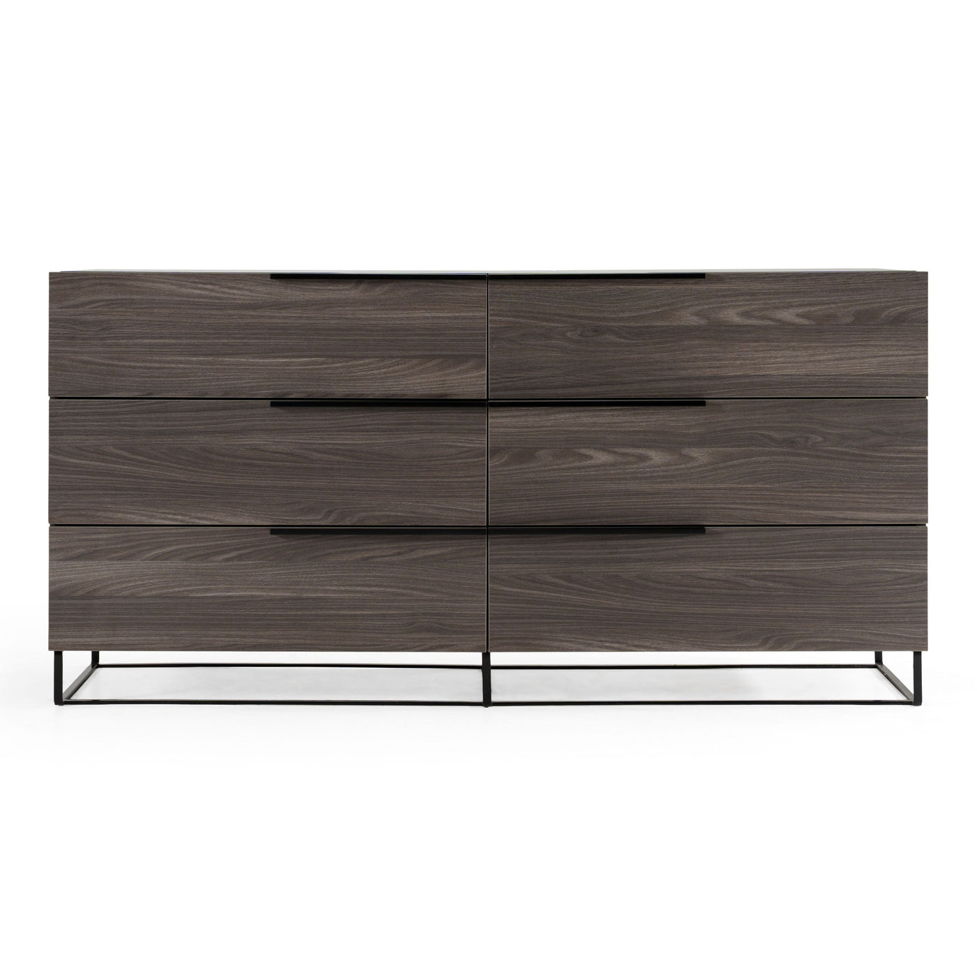 Grey Fabric Upholstered Headboard1 Drawer Nightstands6 Drawer Dresser