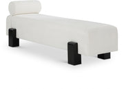 Go for a cozy, chic vibe with this cream Edith chenille fabric bench, a versatile and stylish addition to your home. Upholstered in soft cream chenille fabric, it epitomizes comfort and sophistication. The rich black finish of the solid wood base adds warmth and durability, ensuring this bench is both functional and timeless. A bolster pillow is included for added comfort and a touch of elegance. The bench's modern mid-century design seamlessly complements a range of decor styles in the entryway, bedroom, or living room.