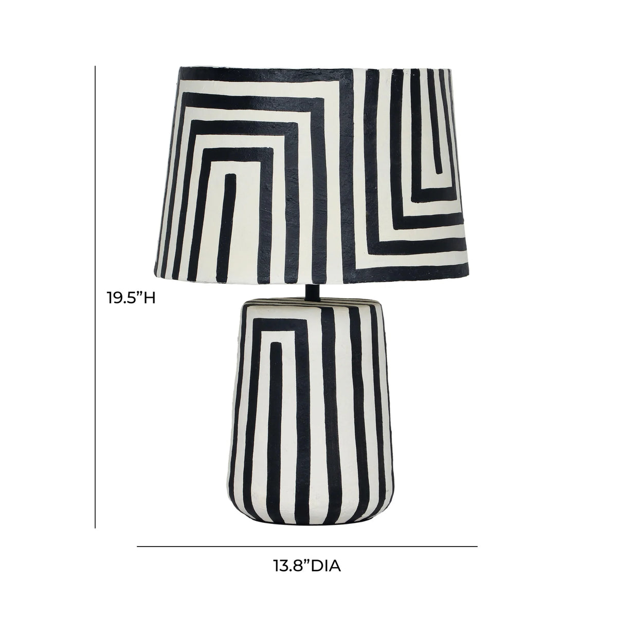 Looking for a lamp that goes anywhere? Introducing the Miami Black Striped Papier Mache Table Lamp, where graphic design meets artisanal craftsmanship. The lamp features a bold black and white striped pattern, creating a visually striking appeal. With its textured Papier Mache construction, this lamp adds a touch of artistry to your space, offering a versatile and stylish lighting solution that effortlessly complements various decor styles.