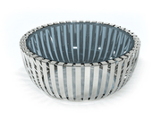 This coffee table includes a stainless steel base, 8mm smoked glass top